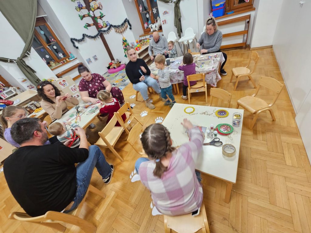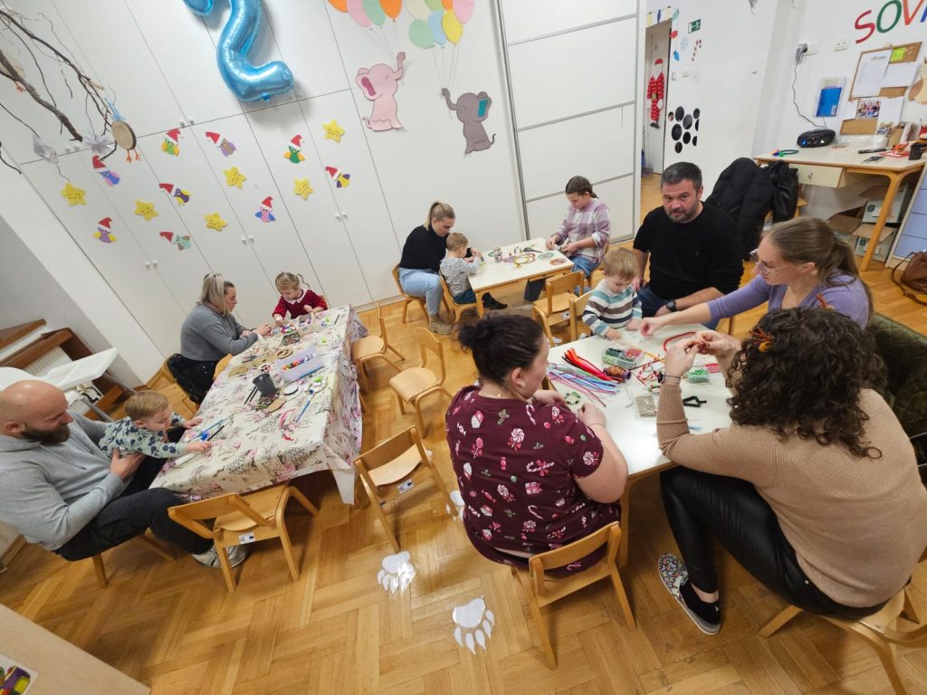 Suradnja  roditelja i odgojitelja važna je za uspješan rad svakog vrtića. Zato svake godine organiziramo božićnu radionicu s roditeljima naše djece. Prilika je to za bolje upoznavanje roditelja i odgojitelja, ali i za druženje roditelja i djece. Djeca svih triju odgojnih skupina zajedno sa svojim roditeljima 17. 12. sudjelovali su u, četvrtoj po redu, božićnoj radionici u našem vrtiću. Pripremili smo razne materijale od kojih su djeca i roditelji izradili božićne  ukrase koje su ponijeli kućama.Sve to uz božićne pjesme, čaj i dobro raspoloženje!