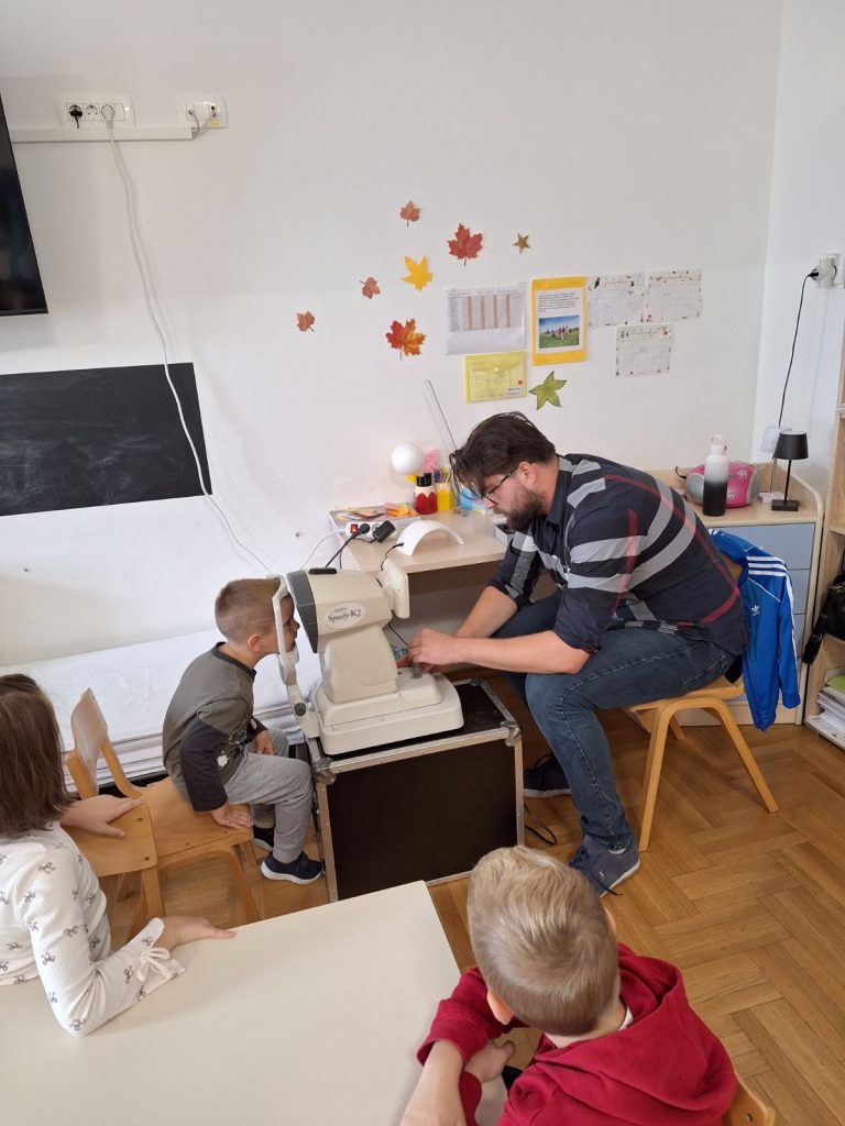 Naši mališani sve više vremena provode ispred ekrana pa je posjet zaposlenika Optike Ana bila savršena prilika za učenje o zdravlju očiju. Optičari su s djecom razgovarali o štetnosti plavog svijetla i kako posebnim staklima štitimo naše oči od njegova negativnog utjecaja. Najhrabriji Radoznalci izmjerili su svoju dioptriju i proučili opremu kako bi budući odlasci na preglede bili što bezbolniji. Na kraju je svatko ukrasio svoje naočale koje su ponijeli kućama.