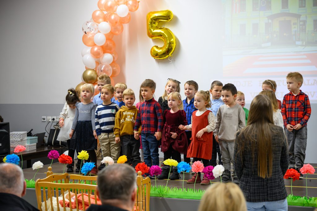 Naš je vrtić 23. studenog proslavio veliki peti rođendan! Kako bismo proslavili pet godina rada, veselja i uspjeha priredili smo prigodnu svečanost. U utorak, 25. studenog 2025. godine u 16 sati počela je svečana priredba kojoj su prisustvovala djeca, njihovi roditelji i posebni gosti. Svečanost se sastojala od prigodnog programa kojeg su pripremila djeca skupina „Zečići“ i „Radoznalci“ i djeca polaznici vanjskog programa predškole. Uslijedili su govori ravnateljice vrtića gospođe Ivane Obadić i načelnika gospodina Damira Poljaka.