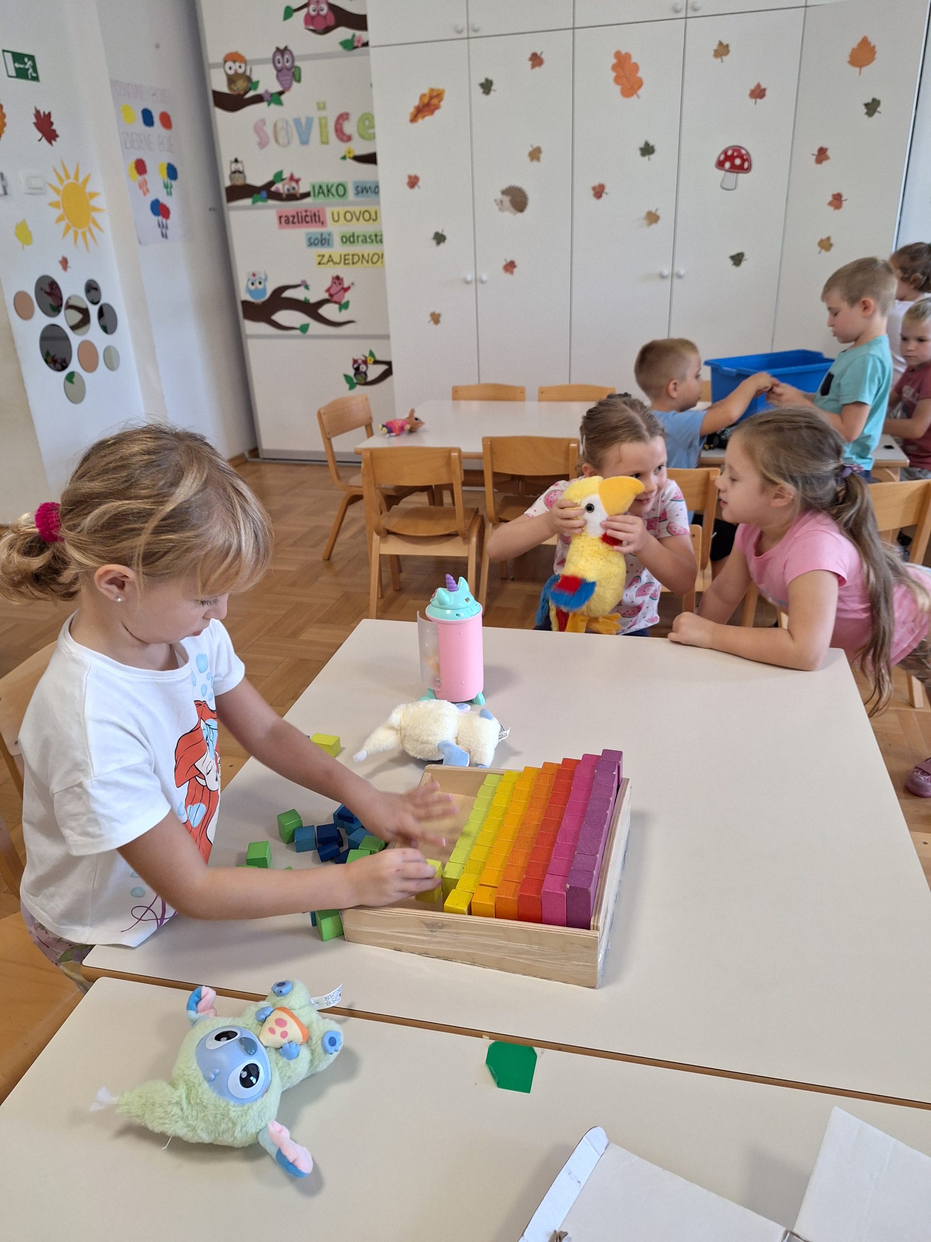 Pozdrav svima! Mi smo starija vrtićka skupina Radoznalci. Ovu veselu družinu čini 11 dječaka i 10 djevojčica u dobi od 4 do 6 godina. Veseli smo, razigrani i radoznali. Svakodnevno sudjelujemo u raznim aktivnostima kojima bogatimo našu spoznaju, upoznajemo svijet oko nas i razvijamo pravilne životne navike. Njegujemo i važne ljudske vrijednosti poput prijateljstva, empatije i poštivanja različitosti. Dio nas priprema se za školu. Naših 11 predškolaraca svakodnevno rješava zadatke kako bi spremno uplovili u školske avanture. Najviše uživamo u igri s prijateljima, a smijeh i zajedništvo neizostavan su dio naših vrtićkih dana!
